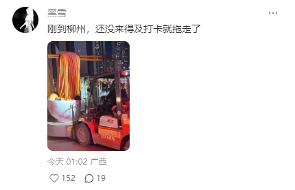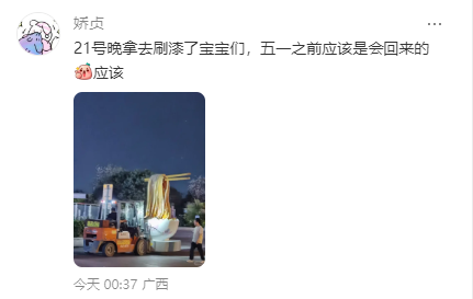 目前螺蛳粉雕塑已运走。来源:网友@广东仔爱旅行