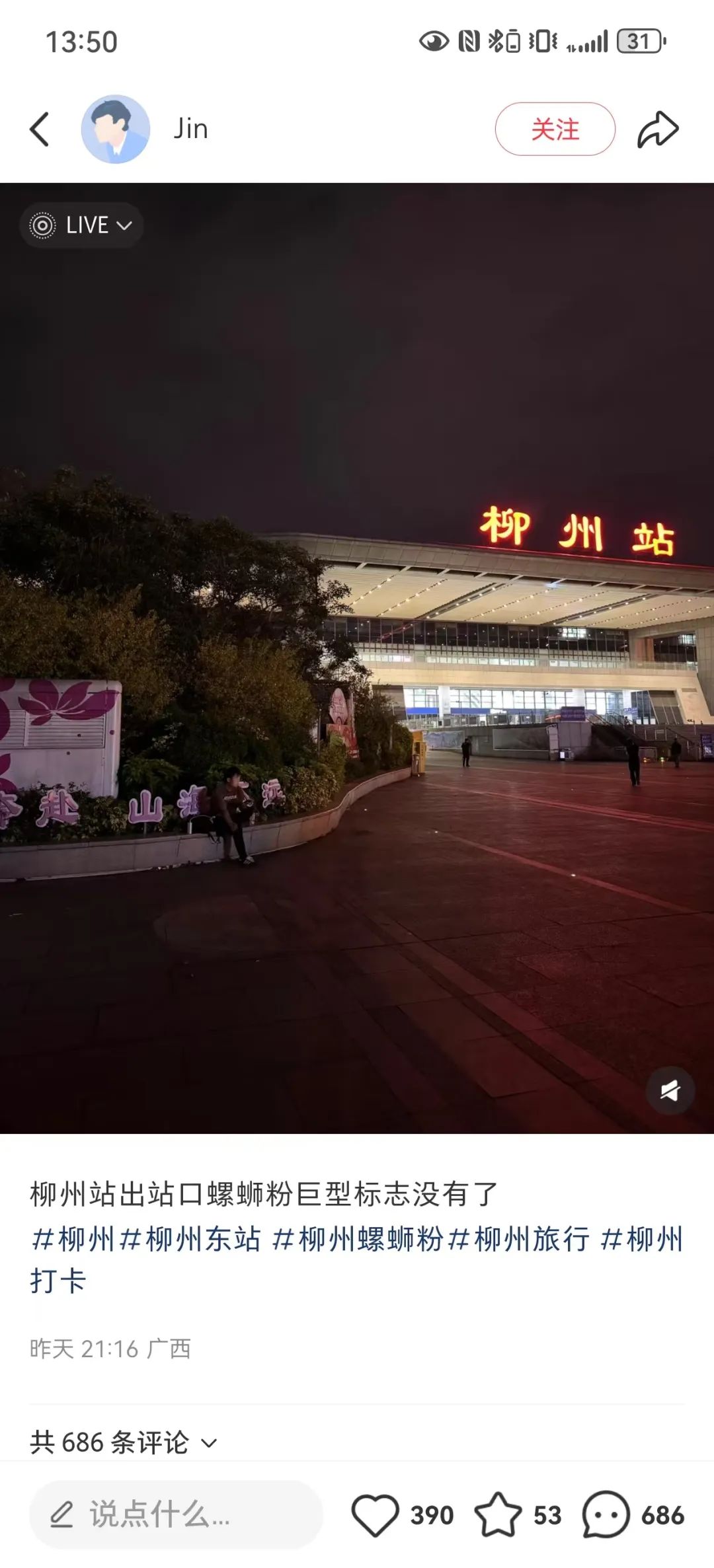 22日,网友“Jin”在社交平台上发帖称:原本设置在柳州火车站东广场出站口的螺蛳粉雕塑不见了。