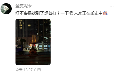 有网友拍到了雕塑被拉走的现场